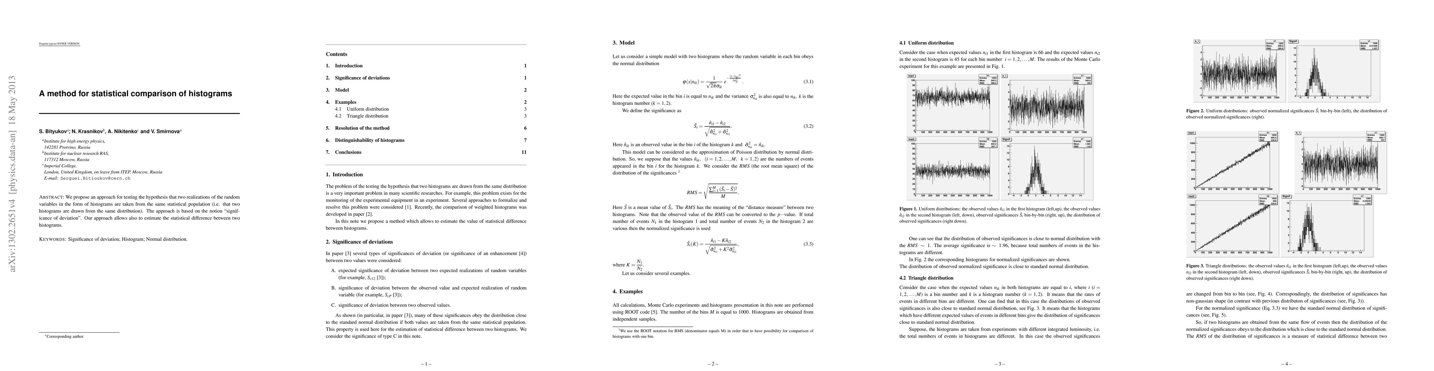 This paper introduces a method for statistically comparing two histograms to test if they originate from the same distribution, utilizing the concept of "significance of deviation" to determine and quantify any differences.