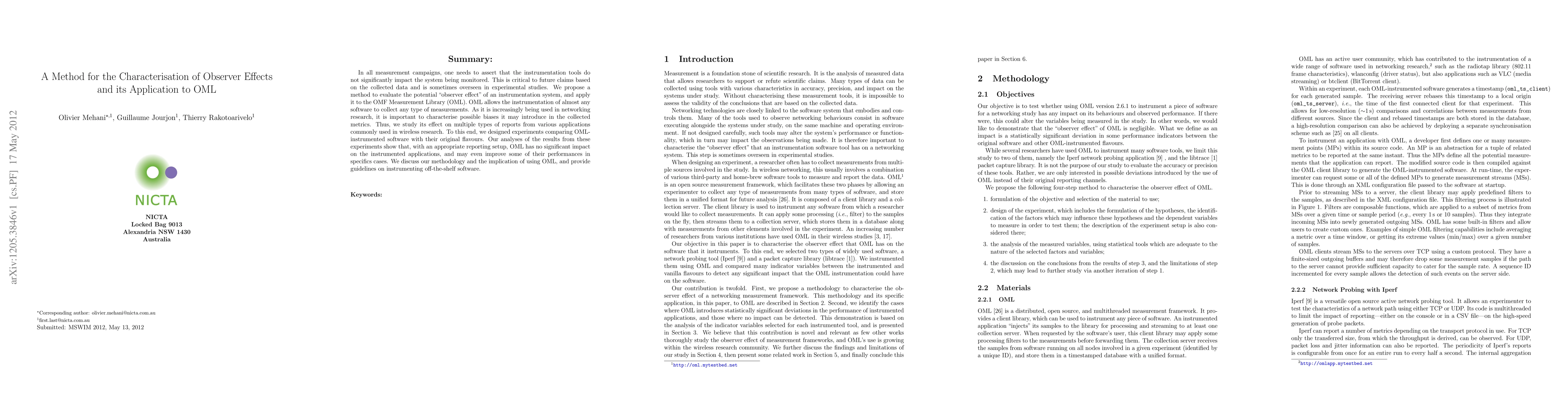 In all measurement campaigns, one needs to assert that the instrumentation tools do not significantly impact the system being monitored. This is critical to future claims based on the collected data and is sometimes overseen in experimental studies. We propose a method to evaluate the potential "observer effect" of an instrumentation system, and apply it to the OMF Measurement Library (OML). OML allows the instrumentation of almost any software to collect any type of measurements. As it is increasingly being used in networking research, it is important to characterise possible biases it may introduce in the collected metrics. Thus, we study its effect on multiple types of reports from various applications commonly used in wireless research. To this end, we designed experiments comparing OML-instrumented software with their original flavours. Our analyses of the results from these experiments show that, with an appropriate reporting setup, OML has no significant impact on the instrumented applications, and may even improve some of their performances in specifics cases. We discuss our methodology and the implication of using OML, and provide guidelines on instrumenting off-the-shelf software.