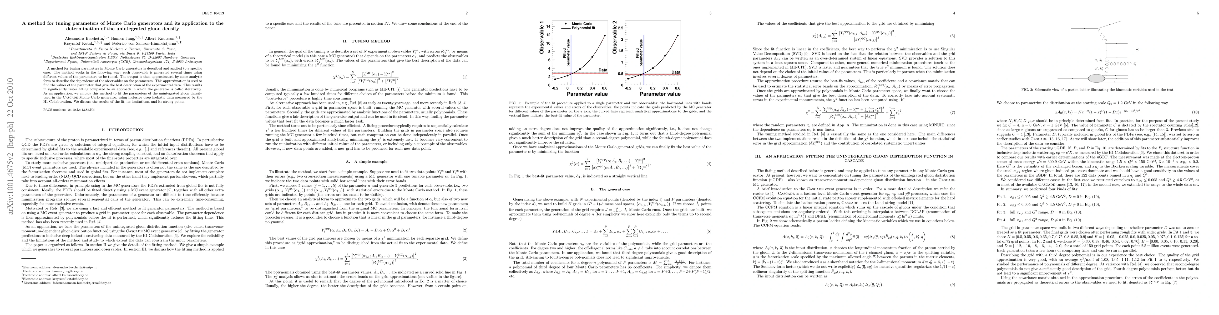 A method for tuning parameters in Monte Carlo generators is described and applied to a specific case. The method works in the following way: each observable is generated several times using different values of the parameters to be tuned. The output is then approximated by some analytic form to describe the dependence of the observables on the parameters. This approximation is used to find the values of the parameter that give the best description of the experimental data. This results in significantly faster fitting compared to an approach in which the generator is called iteratively. As an application, we employ this method to fit the parameters of the unintegrated gluon density used in the CASCADE Monte Carlo generator, using inclusive deep inelastic data measured by the H1 Collaboration. We discuss the results of the fit, its limitations, and its strong points.