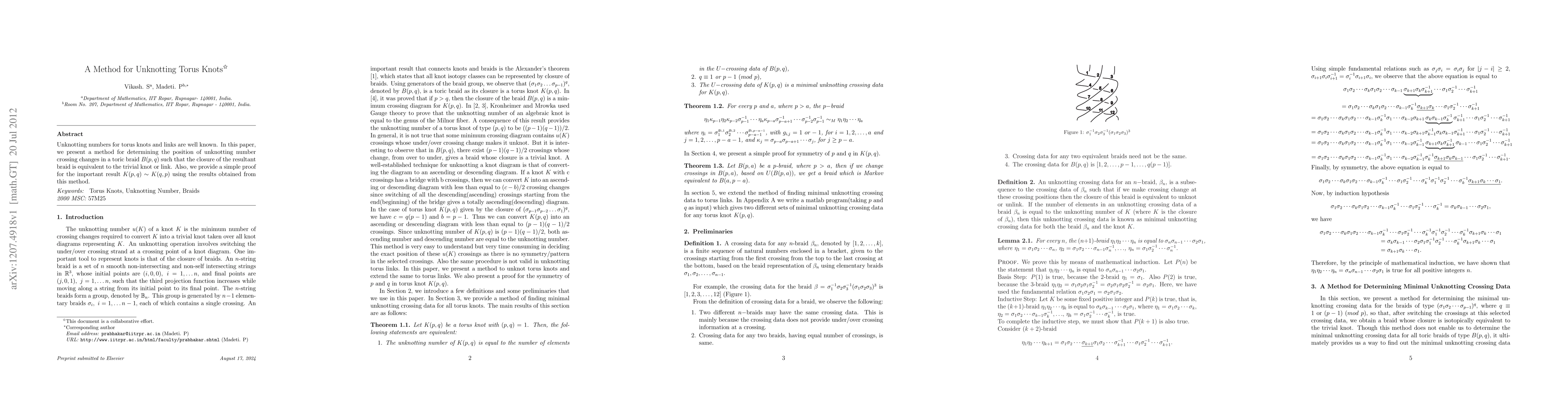 This paper introduces a method to identify unknotting number crossing changes in toric braids B(p, q) ensuring their closures become trivial knots or links, and presents a straightforward proof for the equivalence K(p, q) ~ K(q, p).