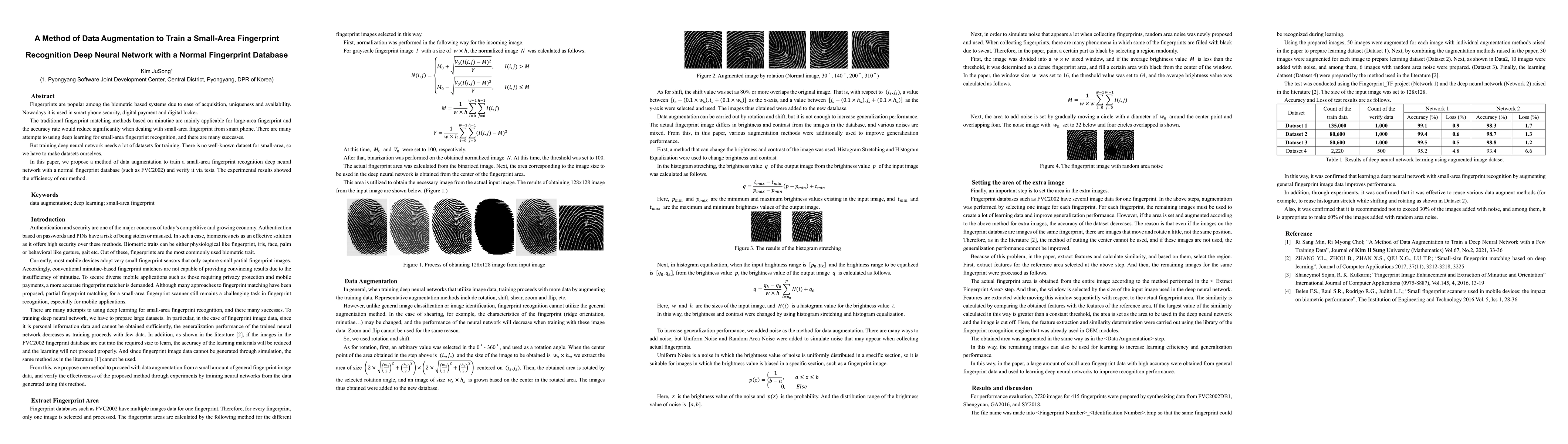 This paper proposes a data augmentation method to train a small-area fingerprint recognition deep neural network using a standard fingerprint dataset. The method effectively compensates for the lack of small-area fingerprint data, demonstrating improved accuracy in recognition tasks.