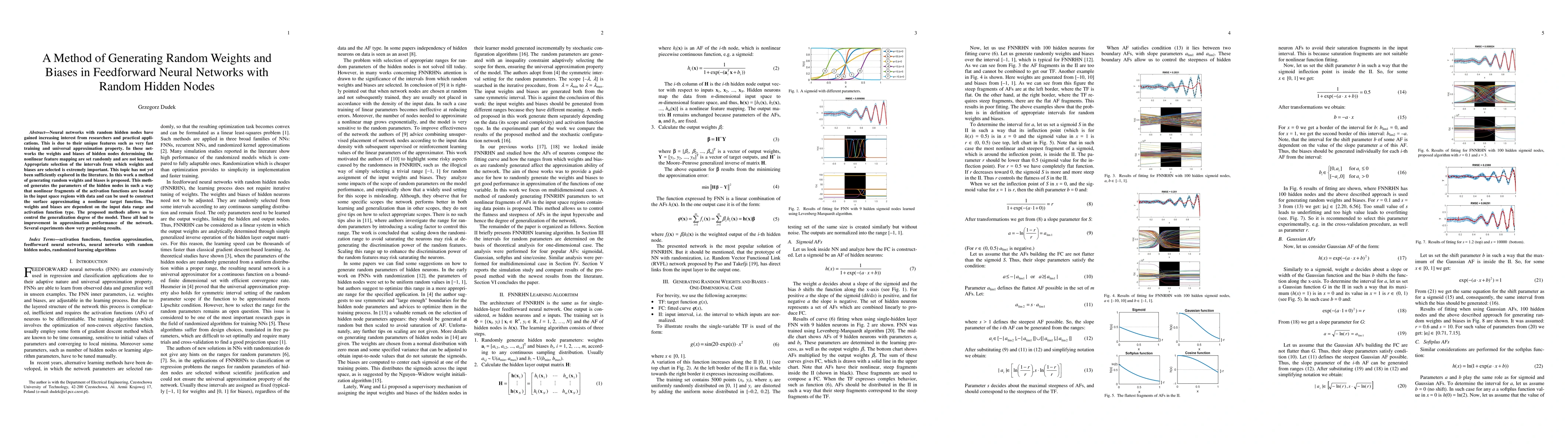 This paper proposes a method for generating random weights and biases in feedforward neural networks with random hidden nodes, aiming to improve training speed and approximation performance. The method ensures that nonlinear fragments of activation functions are positioned in regions with data, enhancing the network's ability to approximate nonlinear target functions.