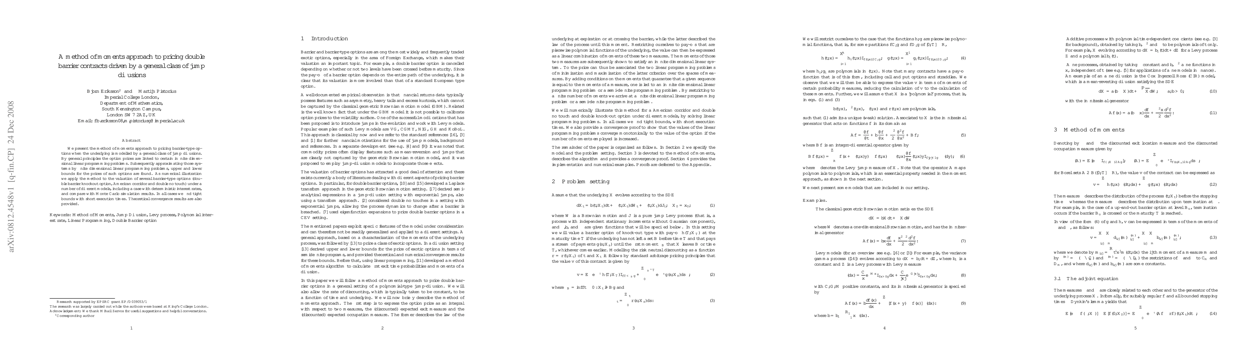 We present the method of moments approach to pricing barrier-type options when the underlying is modelled by a general class of jump diffusions. By general principles the option prices are linked to certain infinite dimensional linear programming problems. Subsequently approximating those systems by finite dimensional linear programming problems, upper and lower bounds for the prices of such options are found. As numerical illustration we apply the method to the valuation of several barrier-type options (double barrier knockout option, American corridor and double no touch) under a number of different models, including a case with deterministic interest rates, and compare with Monte Carlo simulation results. In all cases we find tight bounds with short execution times. Theoretical convergence results are also provided.
