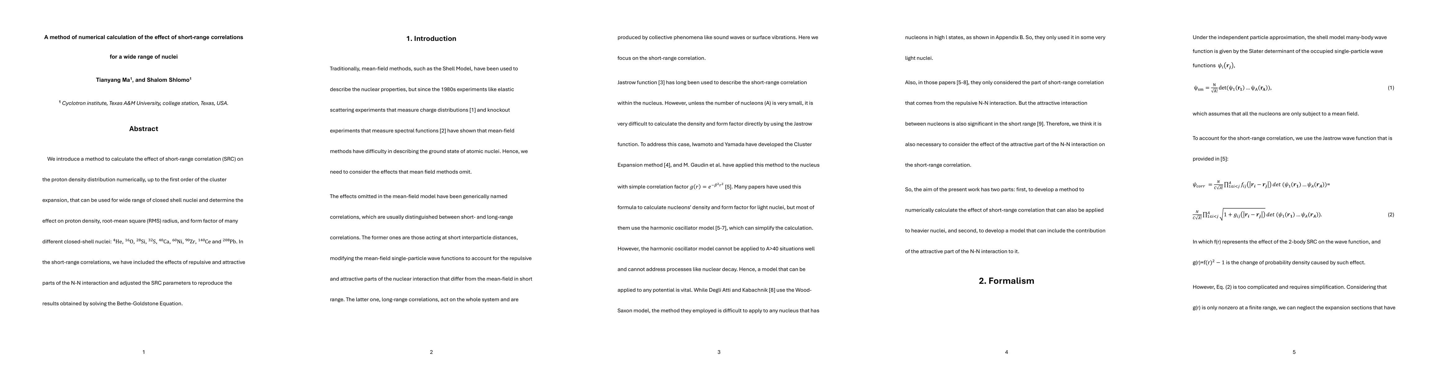 Researchers developed a method to calculate short-range correlations in nuclear physics, applying it to 8 nuclei with accurate results, improving our understanding of the behavior of protons at different levels.