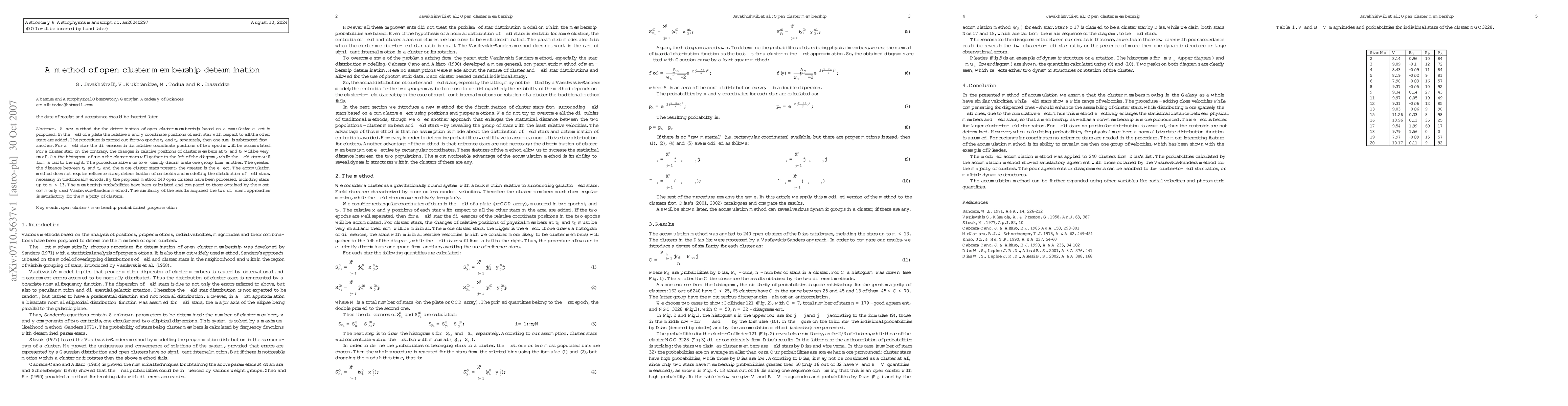 This paper proposes a new method for determining open cluster membership based on the cumulative effect of relative star positions over two epochs, effectively distinguishing cluster stars from field stars. The method does not require reference stars or complex modeling, and it successfully processed 240 open clusters, yielding membership probabilities comparable to the traditional Vasilevskis-Sanders method.