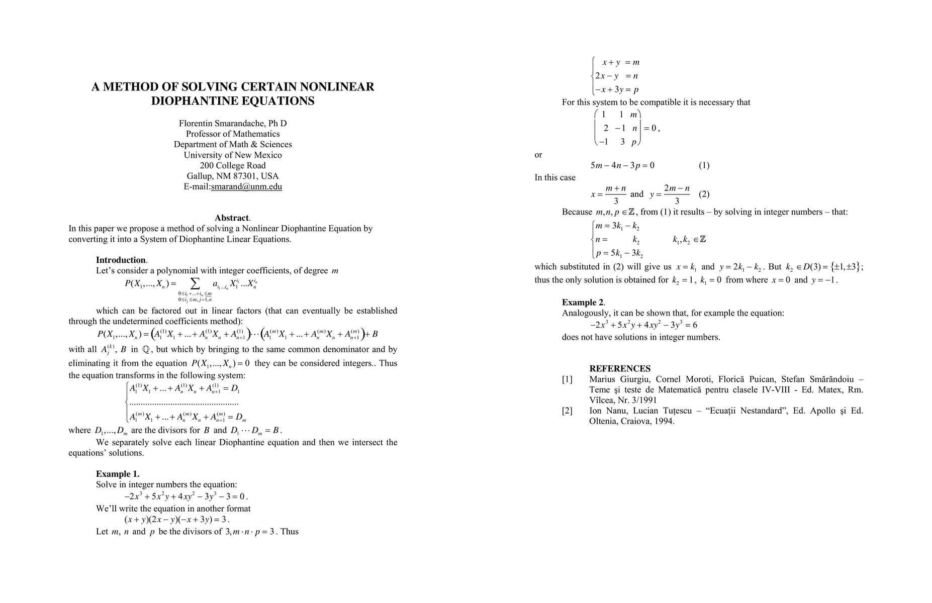Summary: This paper introduces a novel method to solve certain nonlinear Diophantine equations by transforming them into a system of linear Diophantine equations, facilitating easier resolution.