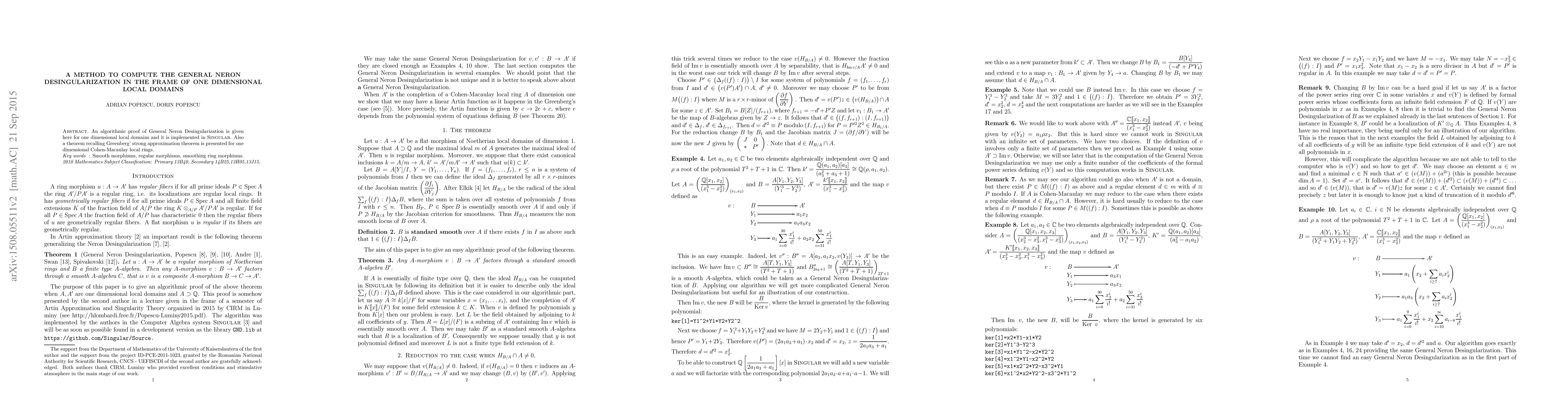 Researchers developed an algorithm to prove General Neron Desingularization in one-dimensional local domains, with implications for Cohen-Macaulay local rings.