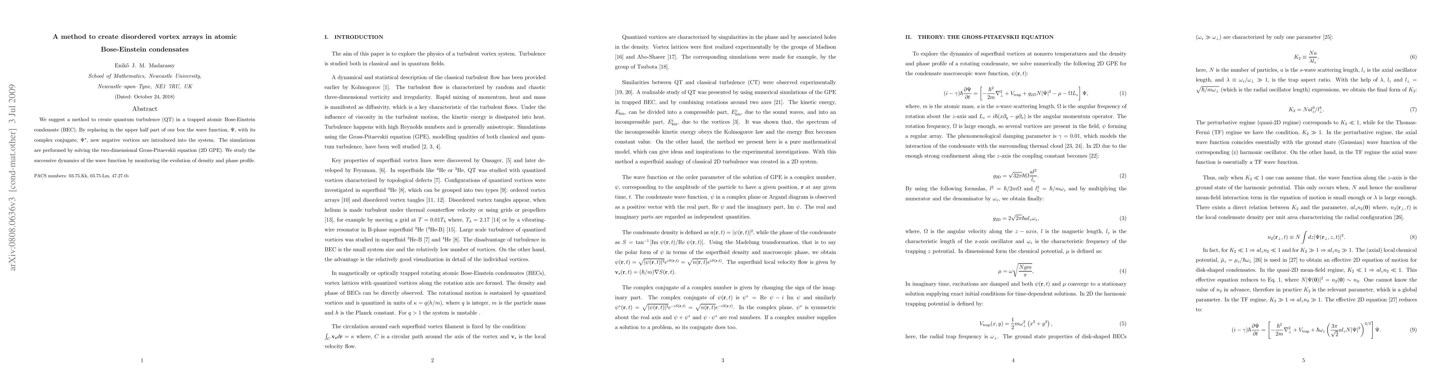 Scientists created a method to induce turbulence in atomic Bose-Einstein condensates by introducing negative vortices through complex conjugation of the wave function, allowing for controlled study of disordered vortex arrays.