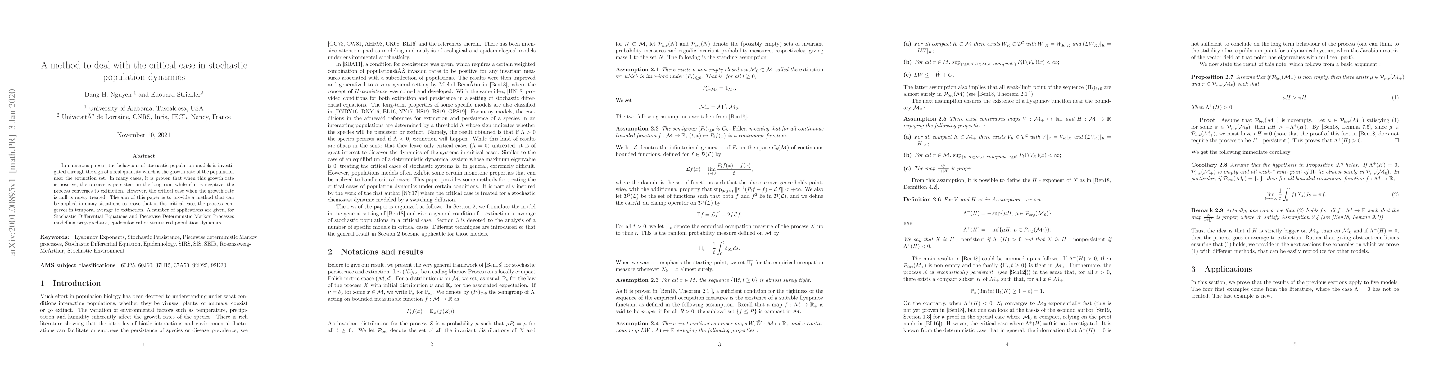 Researchers develop a method to study critical cases in stochastic population dynamics, finding that processes converge to extinction even when growth rates are zero. This approach has implications for modeling complex systems like prey-predator dynamics, epidemiology, and structured populations.