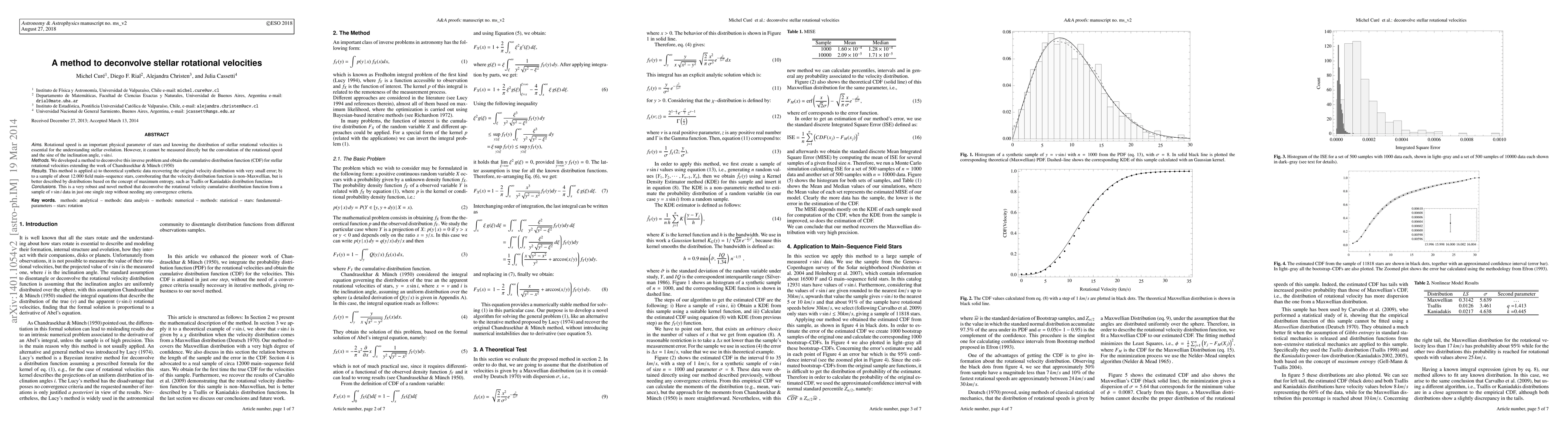 This paper presents a novel method to deconvolve stellar rotational velocities from the convolution of rotational speed and inclination angle, $v \sin i$. The method successfully recovers the original velocity distribution from synthetic data and applies to a sample of 12,000 main-sequence stars, showing that the velocity distribution is better described by non-Maxwellian distributions like Tsallis or Kaniadakis functions.
