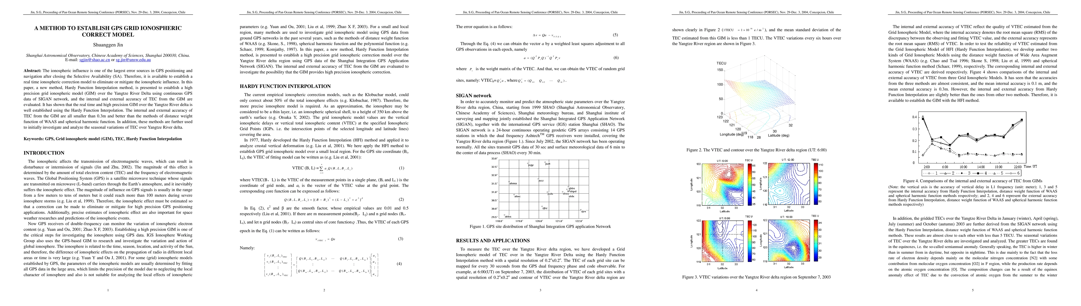 This paper introduces a Hardy Function Interpolation method for establishing a high-precision grid ionospheric model (GIM) over the Yangtze River Delta using SIGAN network data. The method demonstrates superior accuracy in real-time ionospheric correction, outperforming existing methods like WAAS and spherical harmonic functions.