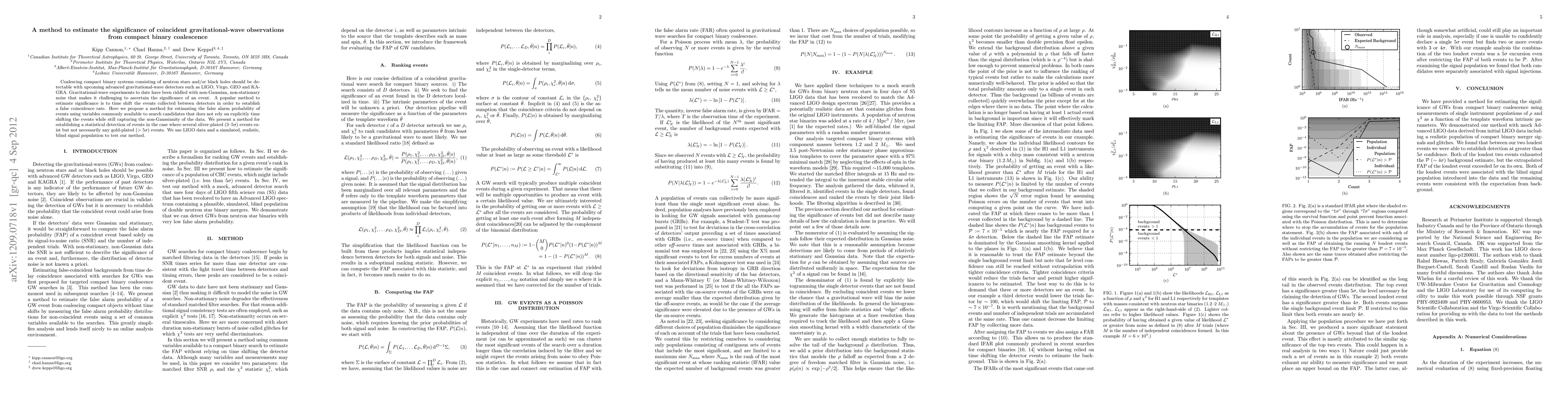 Coalescing compact binary systems consisting of neutron stars and/or black holes should be detectable with upcoming advanced gravitational-wave detectors such as LIGO, Virgo, GEO and {KAGRA}. Gravitational-wave experiments to date have been riddled with non-Gaussian, non-stationary noise that makes it challenging to ascertain the significance of an event. A popular method to estimate significance is to time shift the events collected between detectors in order to establish a false coincidence rate. Here we propose a method for estimating the false alarm probability of events using variables commonly available to search candidates that does not rely on explicitly time shifting the events while still capturing the non-Gaussianity of the data. We present a method for establishing a statistical detection of events in the case where several silver-plated (3--5$\sigma$) events exist but not necessarily any gold-plated ($>5\sigma$) events. We use LIGO data and a simulated, realistic, blind signal population to test our method.