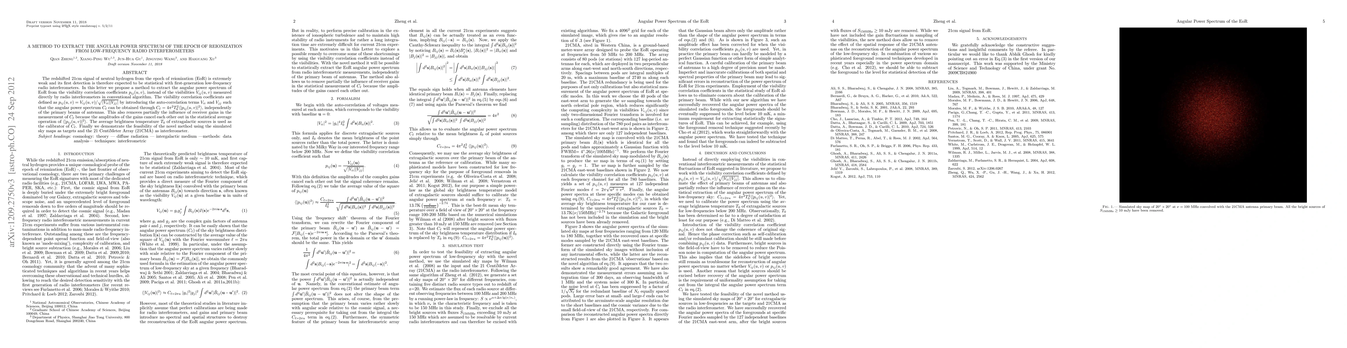Researchers propose a method to analyze weak 21cm signals from the epoch of reionization using visibility correlation coefficients, allowing for accurate extraction of angular power spectra without direct visibility measurements.