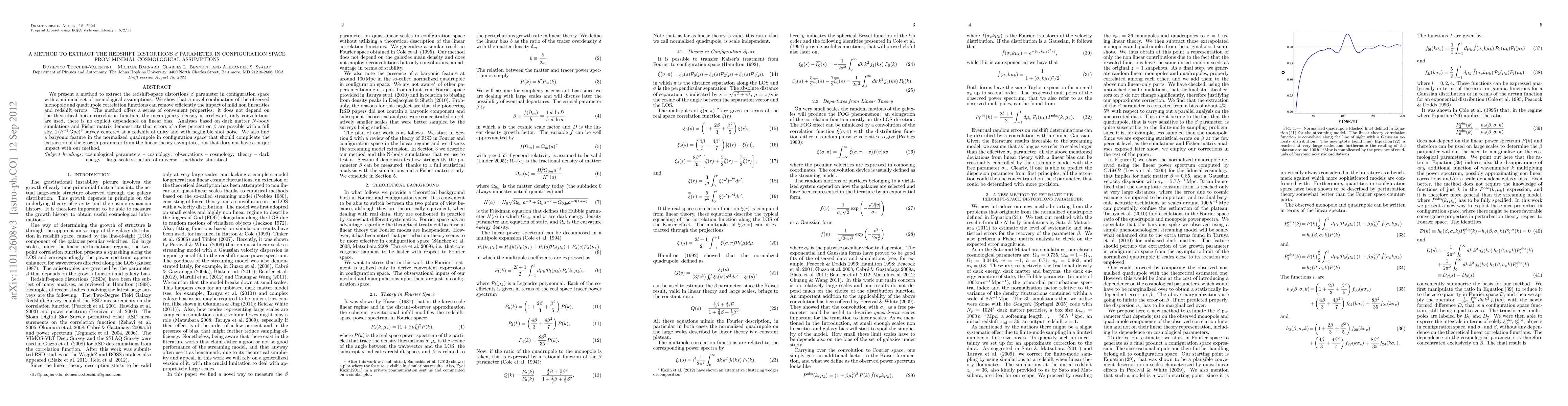 We present a method to extract the redshift-space distortions beta parameter in configuration space with a minimal set of cosmological assumptions. We show that a novel combination of the observed monopole and quadrupole correlation functions can remove efficiently the impact of mild non linearities and redshift errors. The method offers a series of convenient properties: it does not depend on the theoretical linear correlation function, the mean galaxy density is irrelevant, only convolutions are used, there is no explicit dependence on linear bias. Analyses based on dark matter N-body simulations and Fisher matrix demonstrate that errors of a few percent on beta are possible with a full sky, 1(Gpc/h)^3 survey centered at a redshift of unity and with negligible shot noise. We also find a baryonic feature in the normalized quadrupole in configuration space that should complicate the extraction of the growth parameter from the linear theory asymptote, but that does not have a major impact with our method.