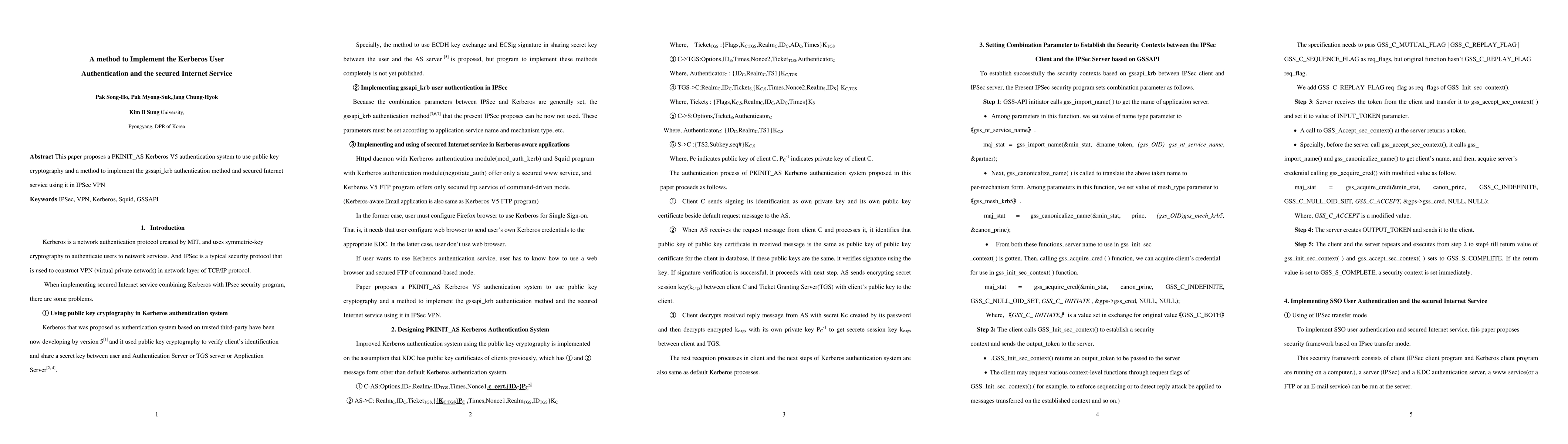 This paper proposes a PKINIT_AS Kerberos V5 authentication system to use public key cryptography and a method to implement the gssapi_krb authentication method and secured Internet service using it in IPSec VPN