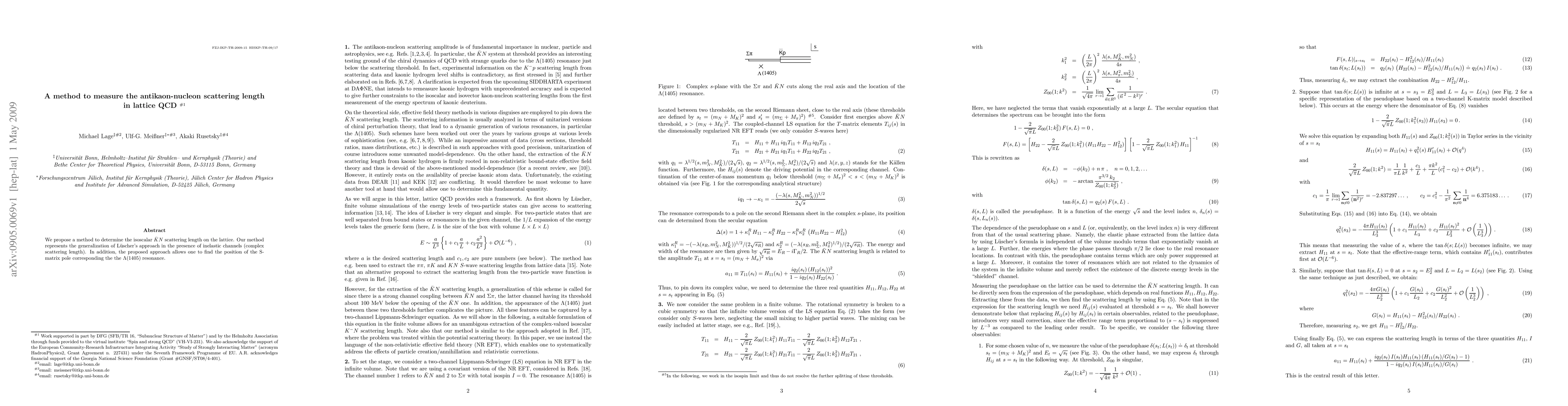 The paper introduces a novel lattice QCD method to compute the isoscalar ar K N scattering length, extending Lüscher's approach for inelastic channels with complex scattering lengths. It also enables finding the Lambda(1405) resonance's S-matrix pole position.