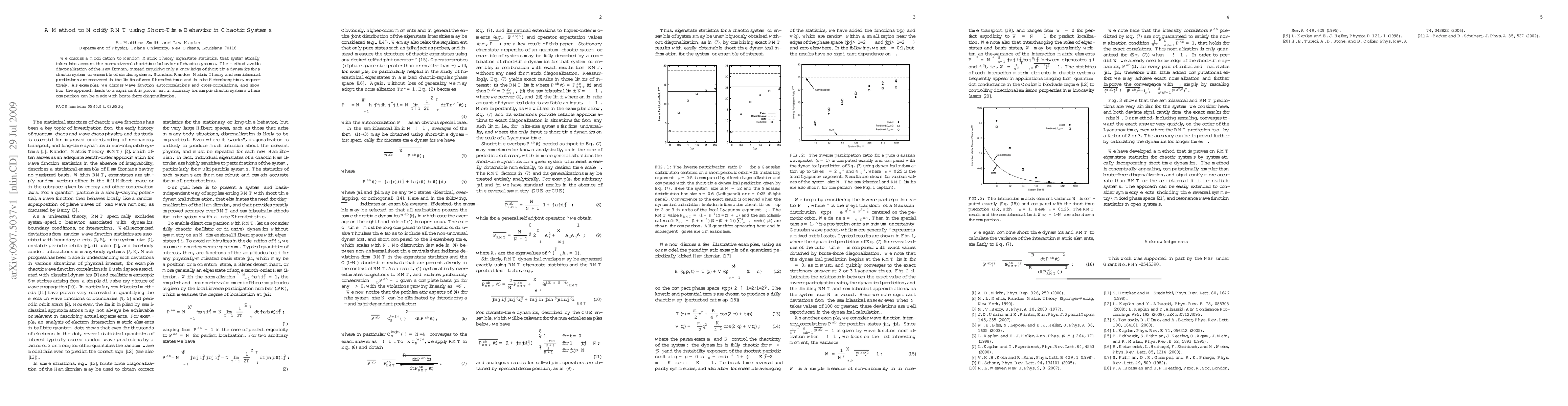 This paper proposes a novel method to modify Random Matrix Theory (RMT) that incorporates the short-time behavior of chaotic systems, avoiding the need for Hamiltonian diagonalization. The method enhances accuracy in predicting wave function autocorrelations and cross-correlations, particularly in simple chaotic systems.