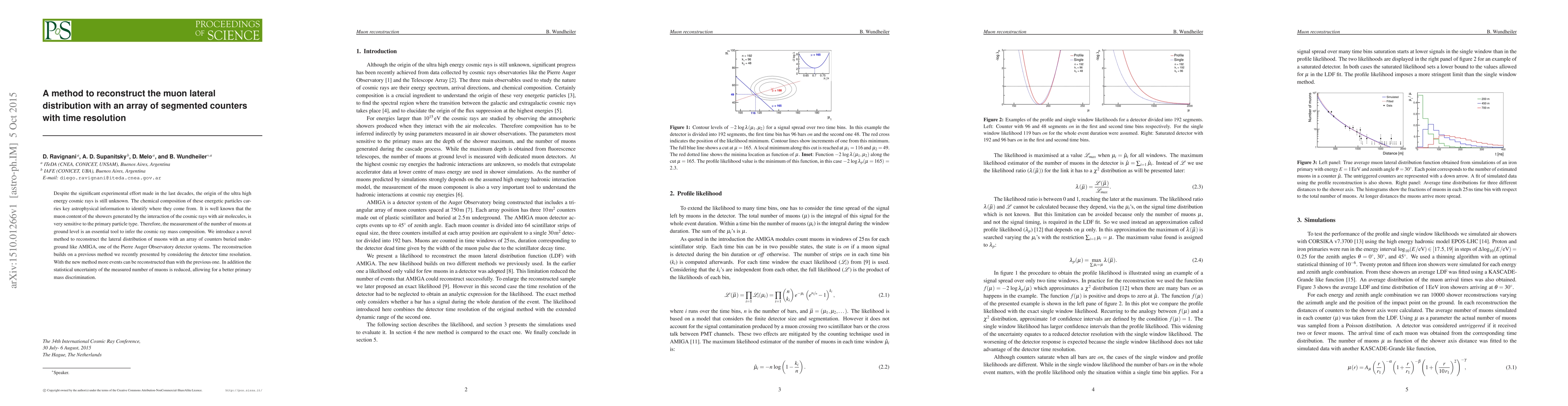 This paper introduces a new method to reconstruct the lateral distribution of muons using an array of segmented counters, improving upon previous techniques by considering time resolution. This advancement enhances the ability to infer the mass composition of ultra-high energy cosmic rays, improving primary mass discrimination.