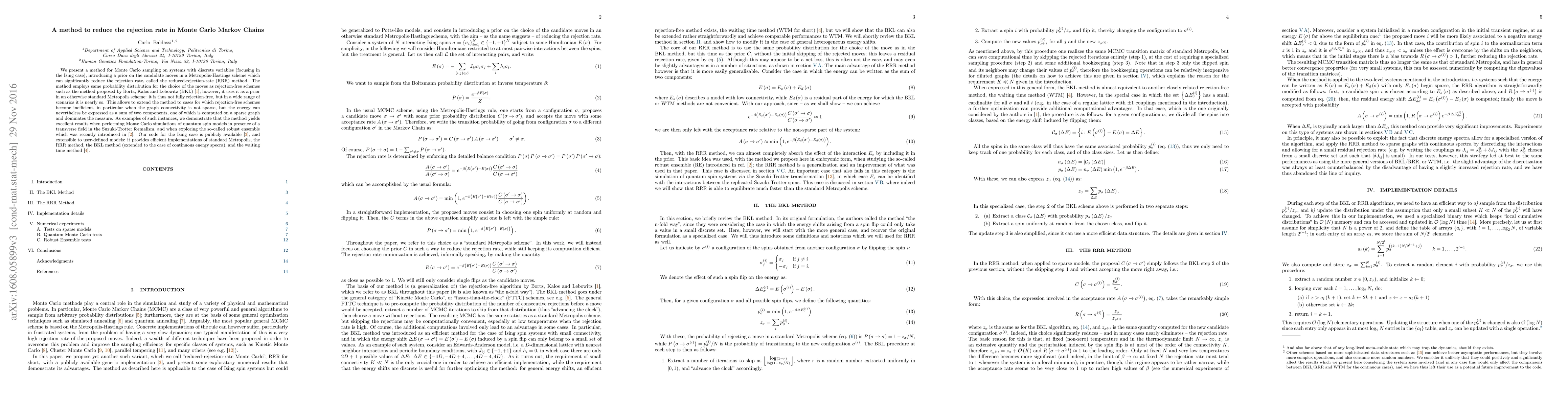We present a method for Monte Carlo sampling on systems with discrete variables (focusing in the Ising case), introducing a prior on the candidate moves in a Metropolis-Hastings scheme which can significantly reduce the rejection rate, called the reduced-rejection-rate (RRR) method. The method employs same probability distribution for the choice of the moves as rejection-free schemes such as the method proposed by Bortz, Kalos and Lebowitz (BKL) [Bortz et al. J.Comput.Phys. 1975]; however, it uses it as a prior in an otherwise standard Metropolis scheme: it is thus not fully rejection-free, but in a wide range of scenarios it is nearly so. This allows to extend the method to cases for which rejection-free schemes become inefficient, in particular when the graph connectivity is not sparse, but the energy can nevertheless be expressed as a sum of two components, one of which is computed on a sparse graph and dominates the measure. As examples of such instances, we demonstrate that the method yields excellent results when performing Monte Carlo simulations of quantum spin models in presence of a transverse field in the Suzuki-Trotter formalism, and when exploring the so-called robust ensemble which was recently introduced in Baldassi et al. [PNAS 2016]. Our code for the Ising case is publicly available [https://github.com/carlobaldassi/RRRMC.jl], and extensible to user-defined models: it provides efficient implementations of standard Metropolis, the RRR method, the BKL method (extended to the case of continuous energy specra), and the waiting time method [Dall and Sibani Comput.Phys.Commun. 2001].
