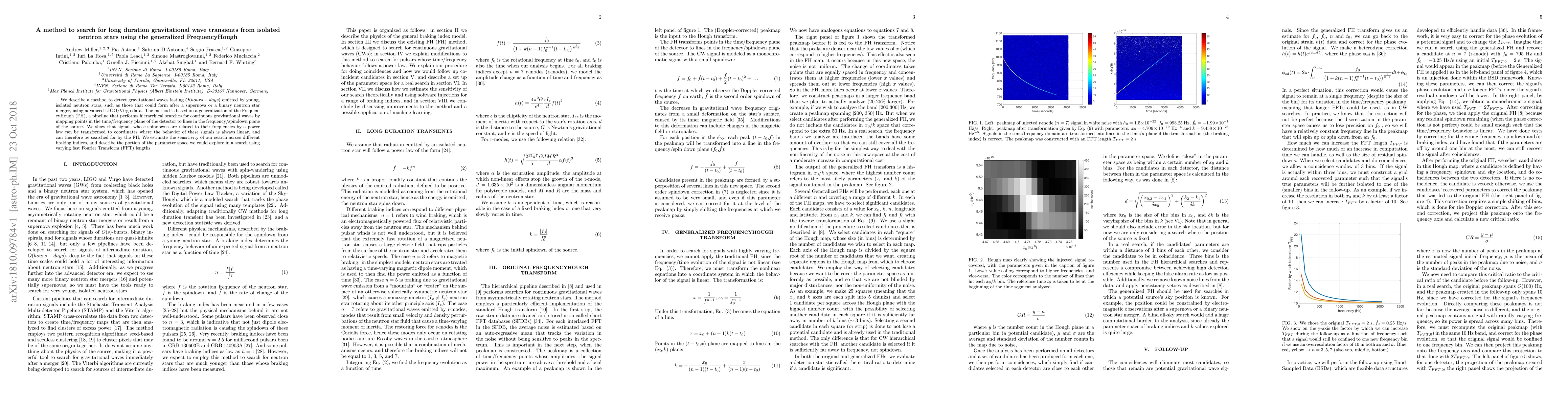A method to detect long-duration gravitational waves from isolated neutron stars has been developed using a generalized FrequencyHough pipeline. This enables searches for transient signals lasting hours to days.