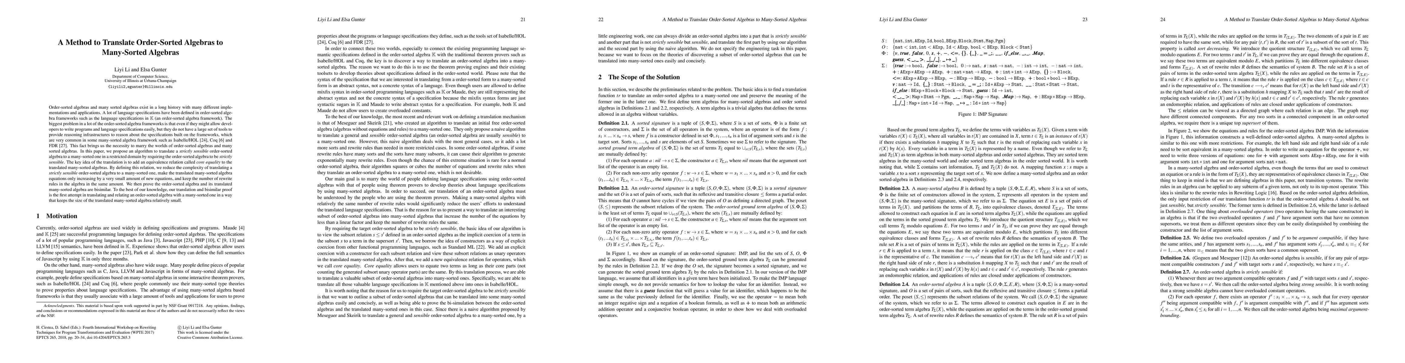 This paper presents an algorithm to translate strictly sensible order-sorted algebras into many-sorted algebras by introducing a core equality relation, ensuring minimal increase in complexity and equation size, and proving bisimilarity between the original and translated algebras. This marks the first attempt to achieve such translation with a small translated algebra size.