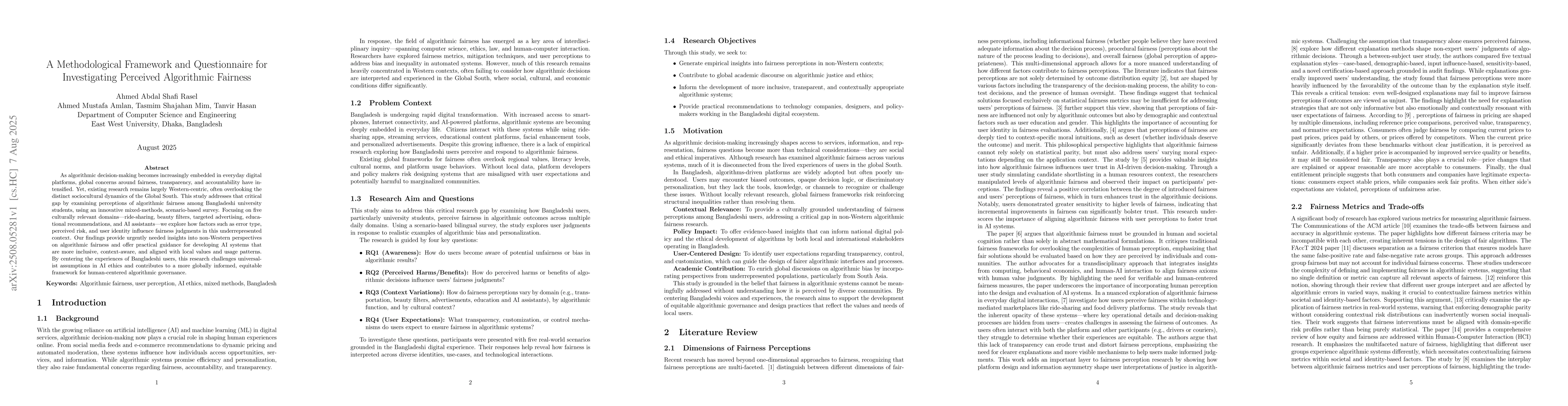 This study explores perceptions of fairness in algorithmic decision-making among users in Bangladesh through a comprehensive mixed-methods approach. By integrating quantitative survey data with qualitative interview insights, we examine how cultural, social, and contextual factors influence users' understanding of fairness, transparency, and accountability in AI systems. Our findings reveal nuanced attitudes toward human oversight, explanation mechanisms, and contestability, highlighting the importance of culturally aware design principles for equitable and trustworthy algorithmic systems. These insights contribute to ongoing discussions on algorithmic fairness by foregrounding perspectives from a non-Western context, thus broadening the global dialogue on ethical AI deployment.