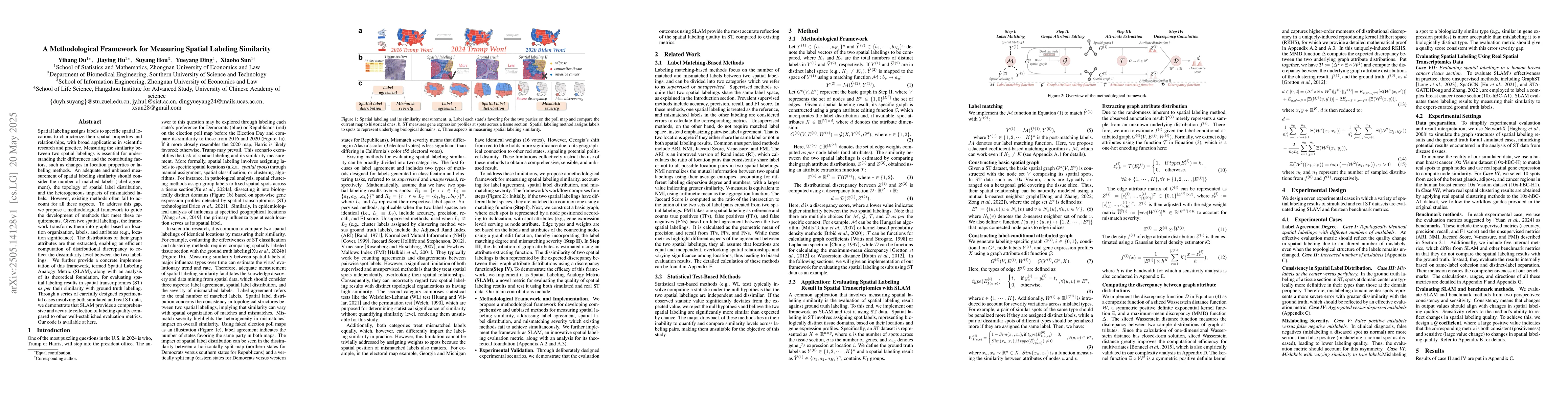 The paper proposes a methodological framework for measuring spatial labeling similarity, transforming labelings into graphs based on location organization, labels, and attributes, then computing distributional discrepancy to reflect dissimilarity.
