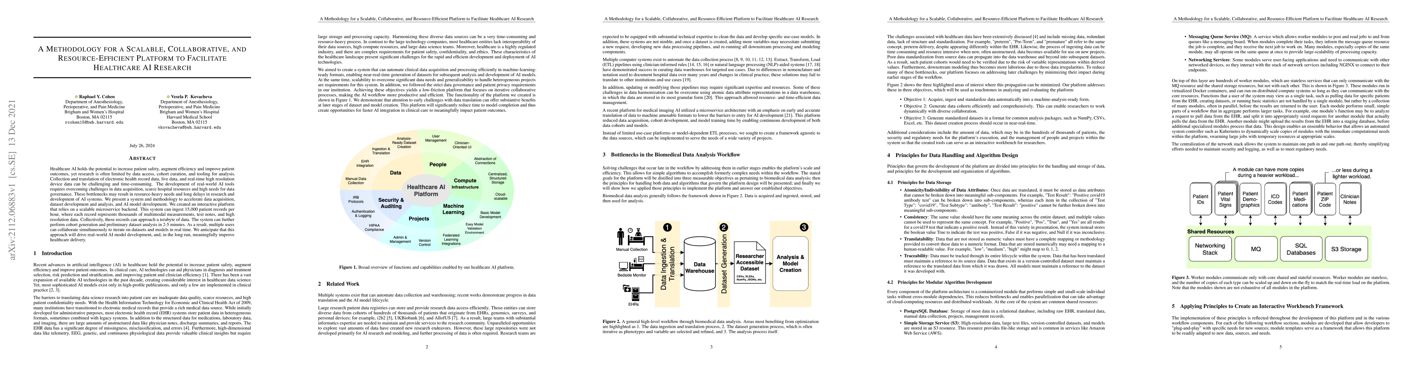This paper introduces a scalable, collaborative platform for healthcare AI research that facilitates rapid data acquisition, cohort curation, and AI model development. The system efficiently processes large volumes of multimodal data and enables real-time collaboration among multiple users, aiming to accelerate AI research and improve healthcare delivery.