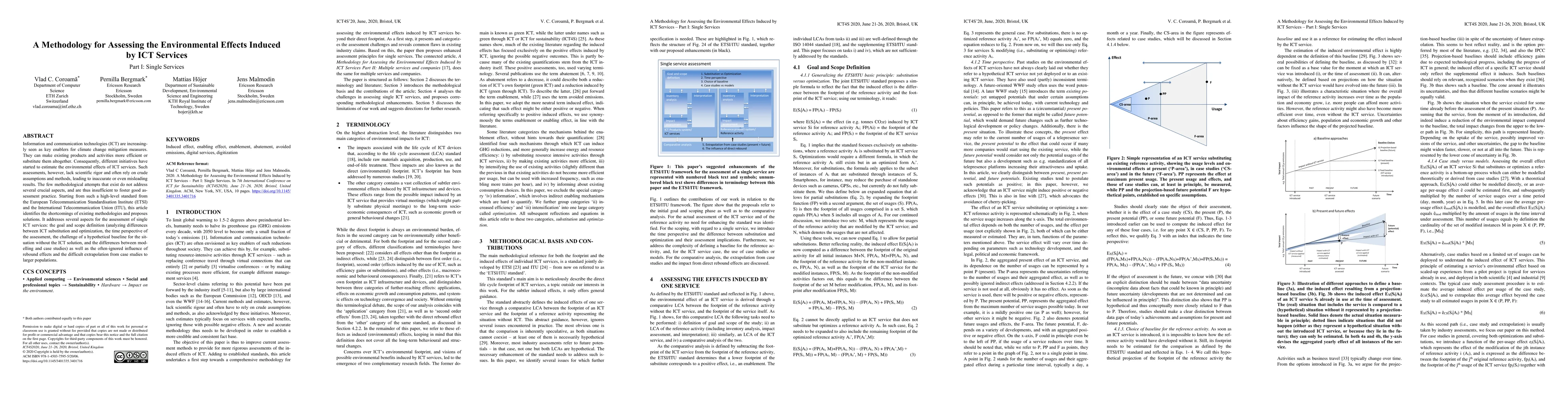 This research paper proposes a methodology for assessing environmental effects of ICT services, addressing shortcomings in existing methods and identifying key areas for improvement, including rebound effects and extrapolation to larger populations.