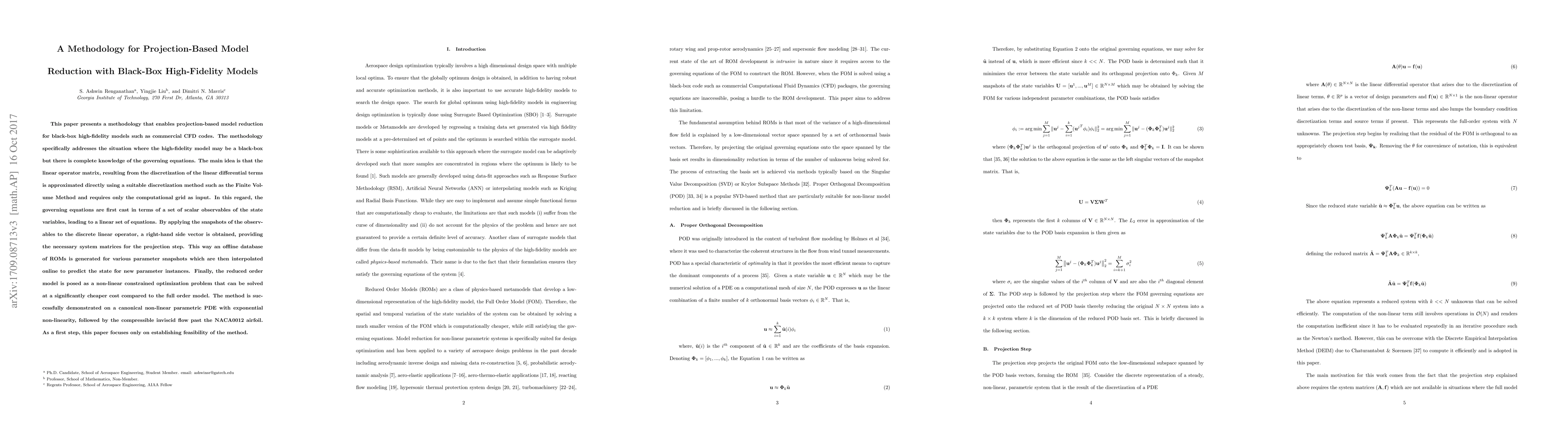 This paper introduces a methodology for reducing complex, black-box high-fidelity models like commercial CFD codes using projection-based techniques. It approximates the linear operator matrix directly from the discretized governing equations, enabling the generation of an online database of reduced order models (ROMs) for various parameter instances. The method is demonstrated on a non-linear PDE and a compressible flow past an airfoil, focusing on establishing feasibility.