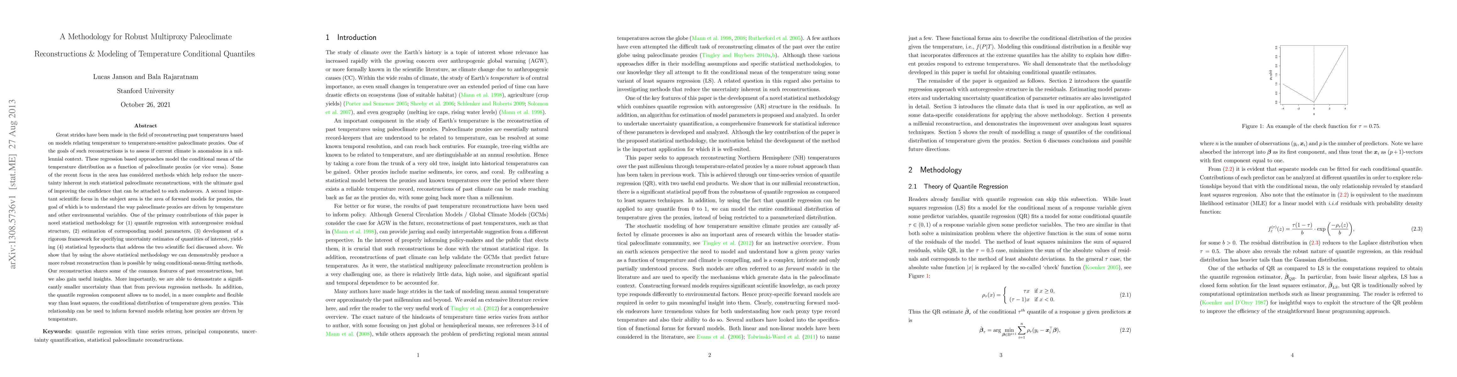 This paper introduces a novel statistical methodology for robust multiproxy paleoclimate reconstructions, focusing on quantile regression with autoregressive residuals to model the conditional distribution of temperature. The approach demonstrates significantly reduced uncertainty and provides more complete insights compared to traditional conditional-mean-fitting methods.