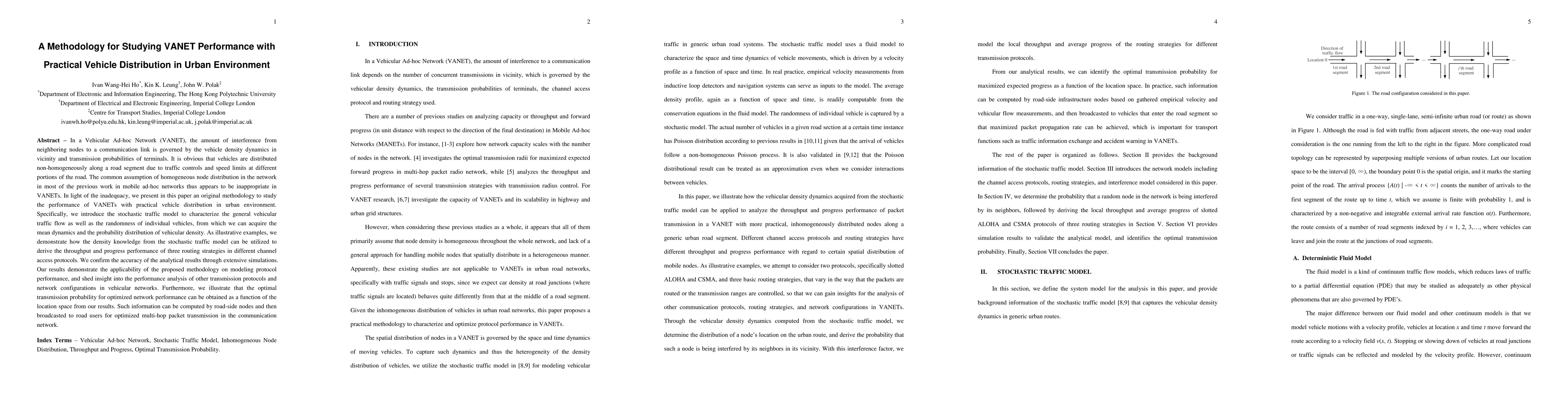 Researchers develop a new methodology to study VANET performance in urban environments, considering non-homogeneous vehicle distribution, and provide insights into optimal transmission probabilities for improved network performance.