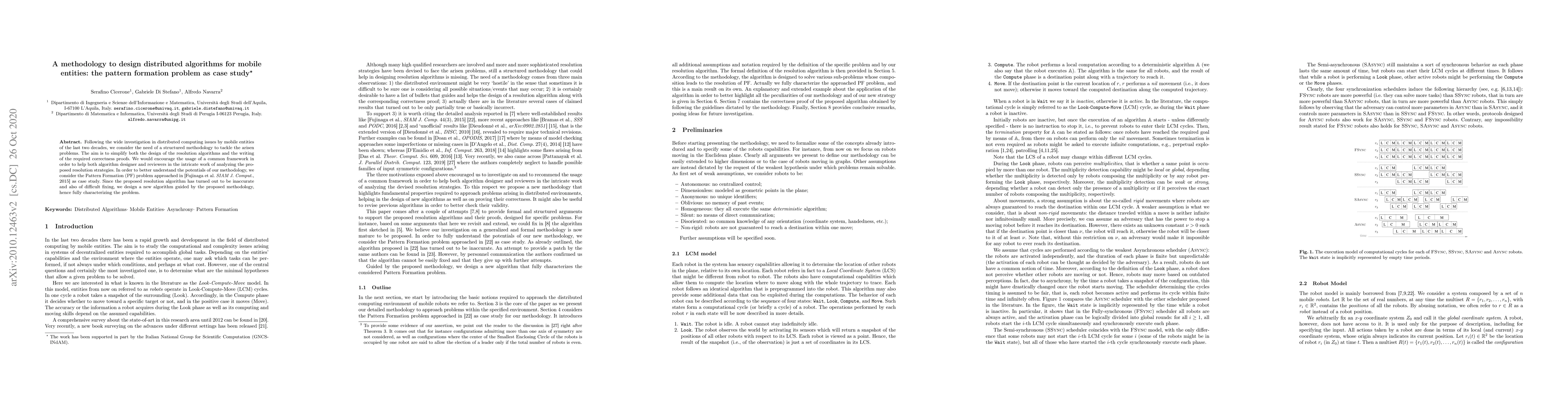 Researchers developed a new methodology to design distributed algorithms for mobile entities, focusing on the Pattern Formation problem as a case study. The goal is to simplify algorithm design and correctness proofs using a common framework.