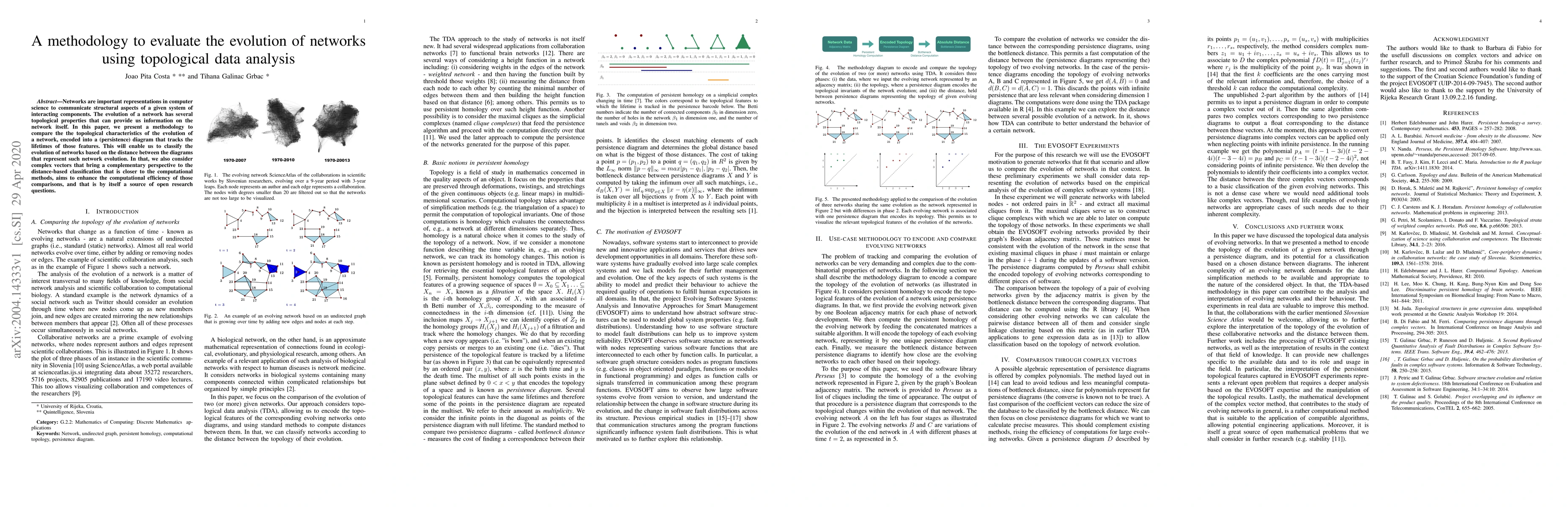 Networks are important representations in computer science to communicate structural aspects of a given system of interacting components. The evolution of a network has several topological properties that can provide us information on the network itself. In this paper, we present a methodology to compare the the topological characteristics of the evolution of a network, encoded into a (persistence) diagram that tracks the lifetimes of those features. This will enable us to classify the evolution of networks based on the distance between the diagrams that represent such network evolution. In that, we also consider complex vectors that bring a complementary perspective to the distance-based classification that is closer to the computational methods, aims to enhance the computational efficiency of those comparisons, and that is by itself a source of open research questions.