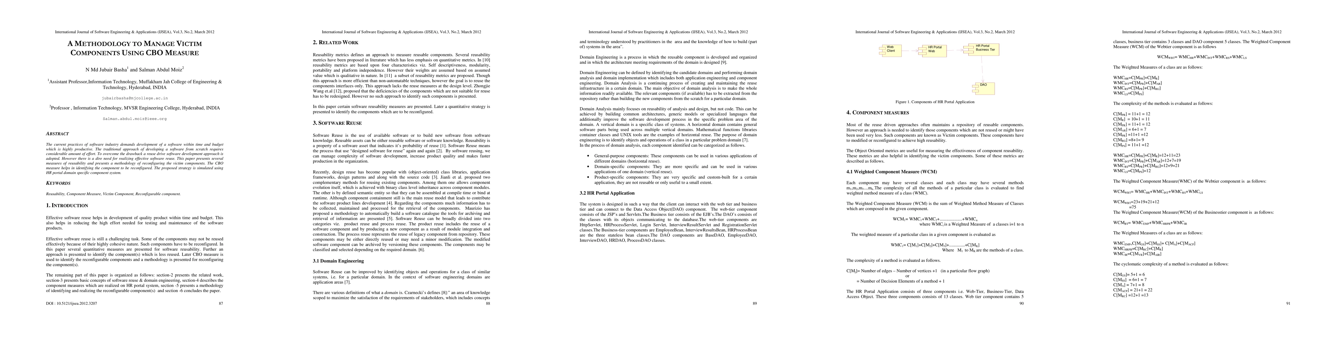 This paper proposes a methodology for managing victim components through reusability measures, focusing on the Component-Based Optimization (CBO) measure to identify components for reconfiguration. The strategy is validated via a simulation using an HR portal domain-specific component system.