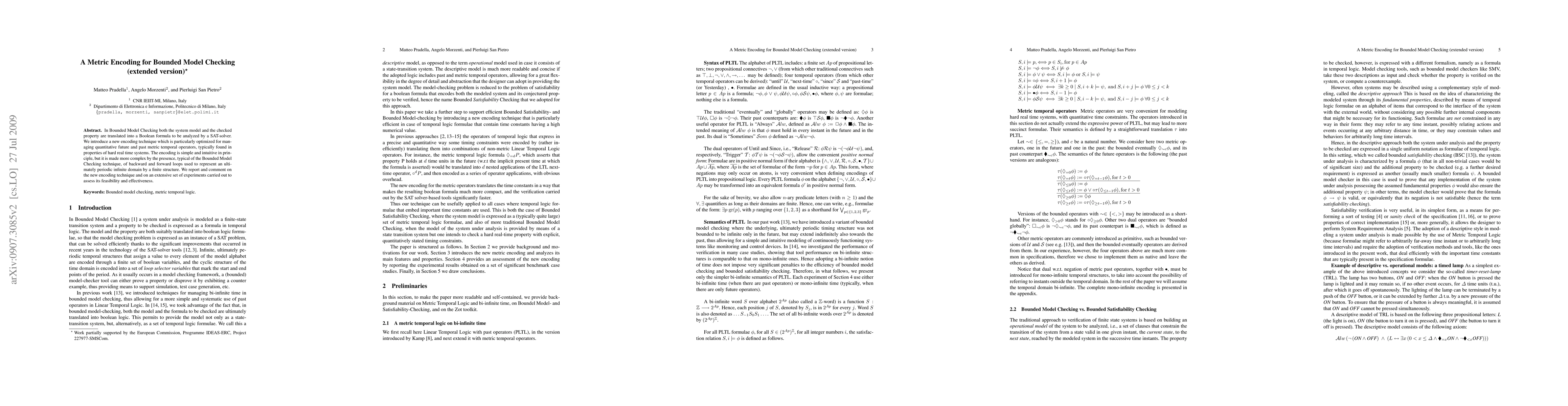 In Bounded Model Checking both the system model and the checked property are translated into a Boolean formula to be analyzed by a SAT-solver. We introduce a new encoding technique which is particularly optimized for managing quantitative future and past metric temporal operators, typically found in properties of hard real time systems. The encoding is simple and intuitive in principle, but it is made more complex by the presence, typical of the Bounded Model Checking technique, of backward and forward loops used to represent an ultimately periodic infinite domain by a finite structure. We report and comment on the new encoding technique and on an extensive set of experiments carried out to assess its feasibility and effectiveness.