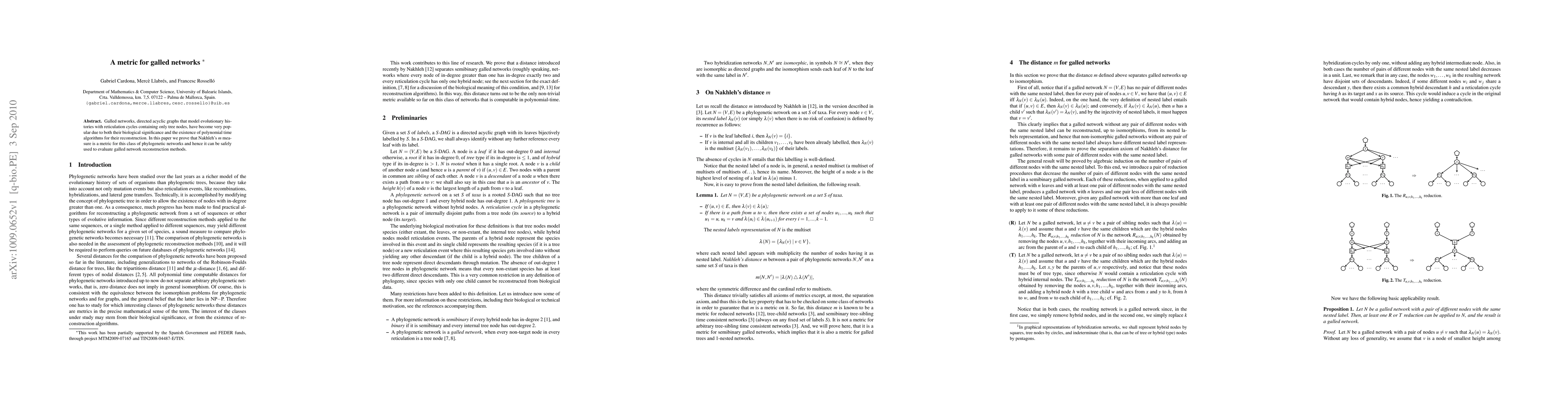 This paper demonstrates that Nakhleh's $m$ measure is a valid metric for galled networks, which are directed acyclic graphs modeling evolutionary histories with reticulation cycles. This finding supports the use of the $m$ measure for evaluating reconstruction methods for these networks.