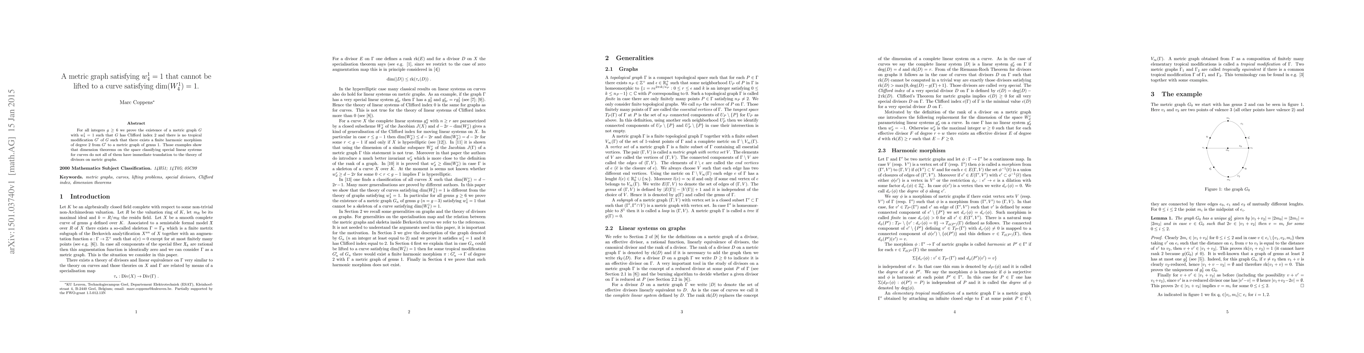 For all integers $g \geq 6$ we prove the existence of a metric graph $G$ with $w^1_4=1$ such that $G$ has Clifford index 2 and there is no tropical modification $G'$ of $G$ such that there exists a finite harmonic morphism of degree 2 from $G'$ to a metric graph of genus 1. Those examples show that dimension theorems on the space classifying special linear systems for curves do not all of them have immediate translation to the theory of divisors on metric graphs.