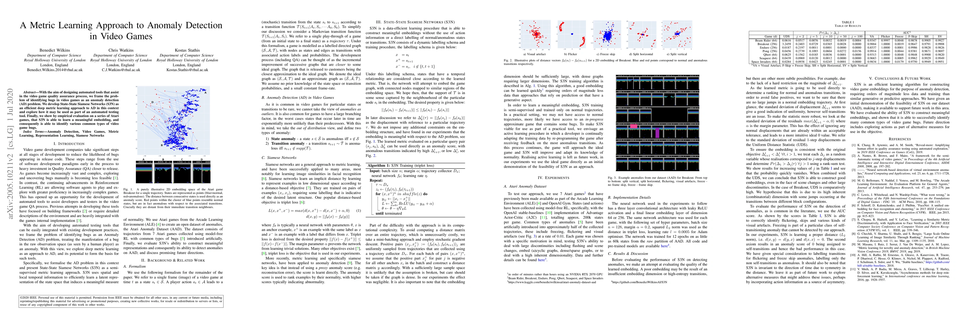 With the aim of designing automated tools that assist in the video game quality assurance process, we frame the problem of identifying bugs in video games as an anomaly detection (AD) problem. We develop State-State Siamese Networks (S3N) as an efficient deep metric learning approach to AD in this context and explore how it may be used as part of an automated testing tool. Finally, we show by empirical evaluation on a series of Atari games, that S3N is able to learn a meaningful embedding, and consequently is able to identify various common types of video game bugs.