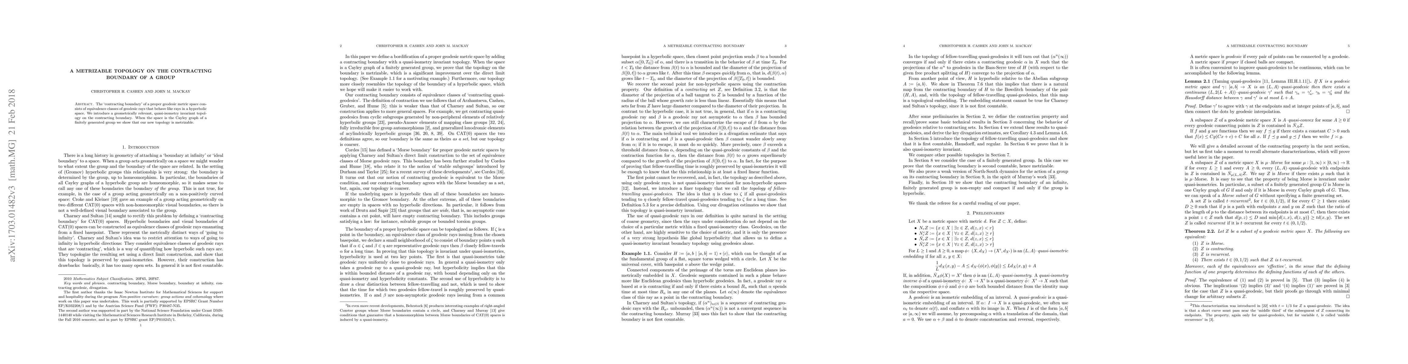 The 'contracting boundary' of a proper geodesic metric space consists of equivalence classes of geodesic rays that behave like rays in a hyperbolic space. We introduce a geometrically relevant, quasi-isometry invariant topology on the contracting boundary. When the space is the Cayley graph of a finitely generated group we show that our new topology is metrizable.
