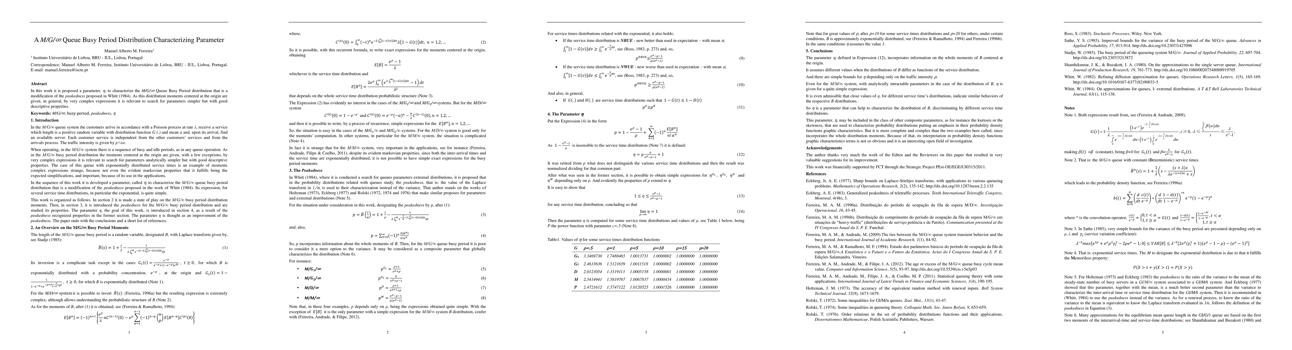 This paper introduces a new parameter, {\eta}, to characterize the distribution of MGinf Queue Busy Periods, aiming to simplify the description of complex moments. The parameter is a modification of Whitt's (1984) peakedness, offering a more straightforward yet effective characterization.