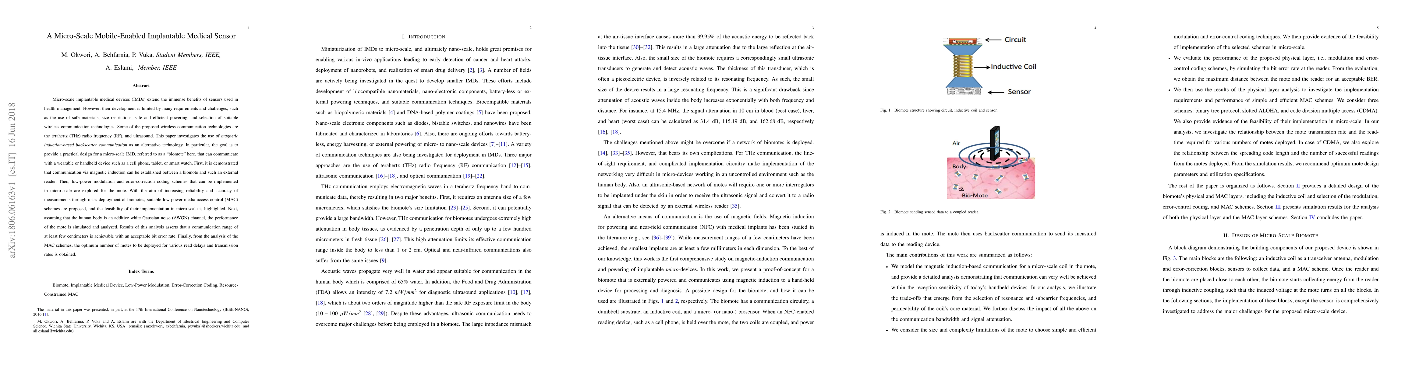 Researchers developed a micro-scale mobile-enabled implantable medical sensor that can communicate with wearable devices via magnetic induction-based backscatter communication, achieving reliable data transmission over short distances.