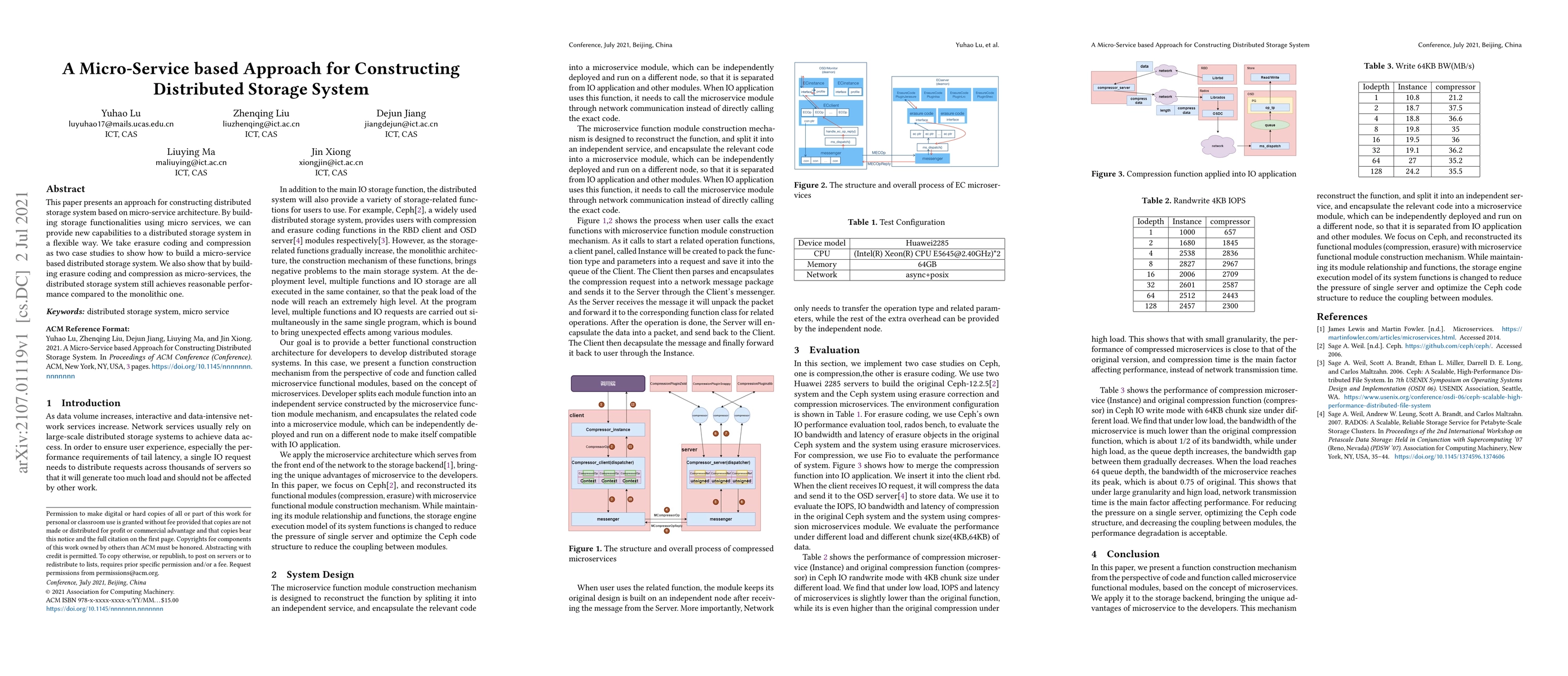 This paper proposes a micro-service architecture for constructing distributed storage systems, demonstrating flexibility through erasure coding and compression as micro-service examples, while maintaining comparable performance to monolithic systems.