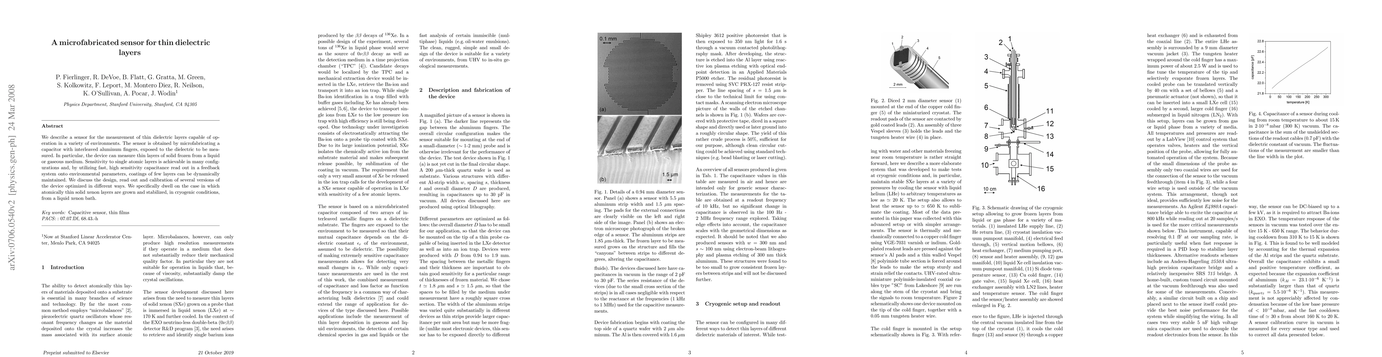 This paper presents a microfabricated sensor designed to measure thin dielectric layers, including single atomic layers, through a microfabricated capacitor with interleaved aluminum fingers. The sensor can dynamically maintain and measure thin layers, such as those of solid xenon grown from a liquid bath under cryogenic conditions, using high sensitivity capacitance readout.