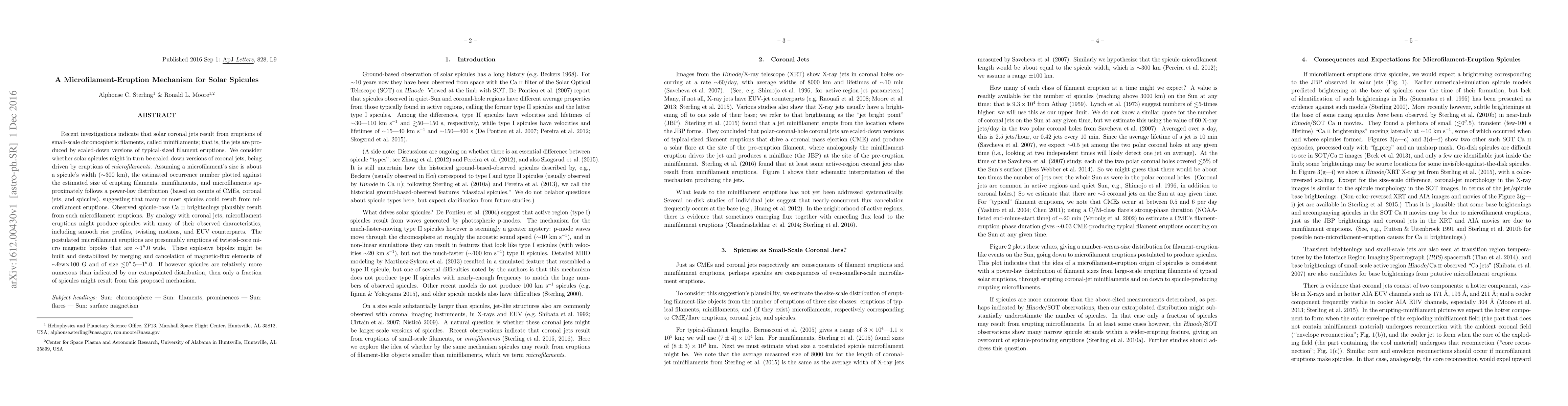 This paper proposes that solar spicules are driven by eruptions of small-scale chromospheric filaments, termed microfilaments, which are analogous to coronal jets. The study suggests that many spicules result from the eruption of these microfilaments, which are twisted-core magnetic bipoles, and that their observed characteristics align with this mechanism.