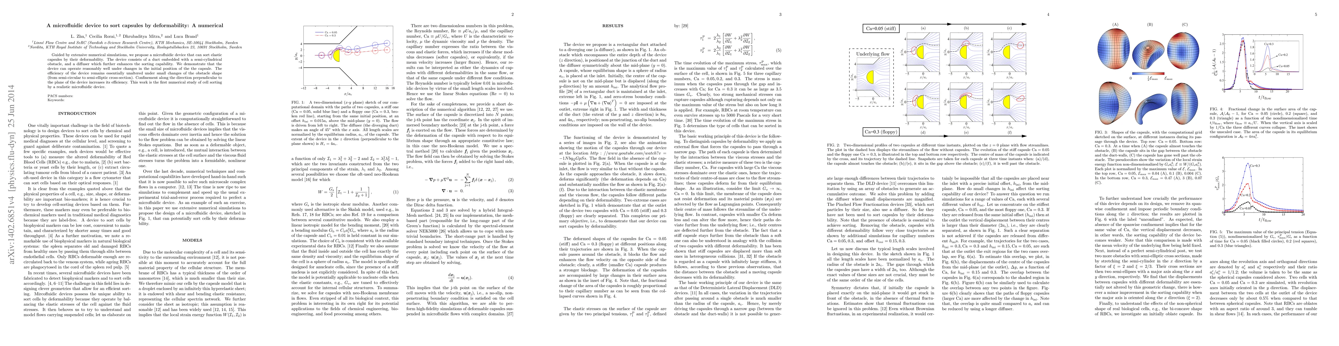 Guided by extensive numerical simulations, we propose a microfluidic device that can sort elastic capsules by their deformability. The device consists of a duct embedded with a semi-cylindrical obstacle, and a diffuser which further enhances the sorting capability. We demonstrate that the device can operate reasonably well under changes in the initial position of the the capsule. The efficiency of the device remains essentially unaltered under small changes of the obstacle shape (from semi-circular to semi-elliptic cross-section). Confinement along the direction perpendicular to the plane of the device increases its efficiency. This work is the first numerical study of cell sorting by a realistic microfluidic device.