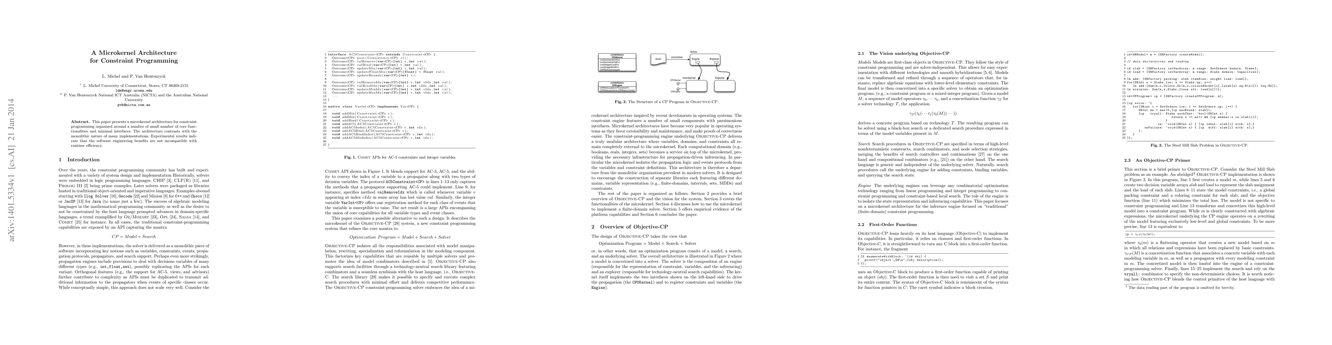 This paper introduces a microkernel architecture for constraint programming focused on core functionalities and minimal interfaces, contrasting with traditional monolithic implementations. Experimental results show that the proposed architecture achieves both software engineering benefits and runtime efficiency.