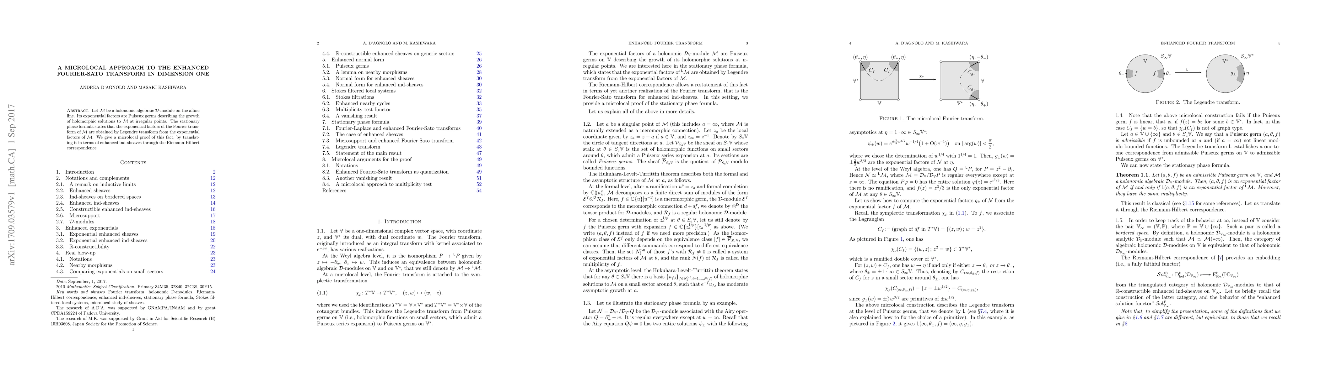 Let $\mathcal{M}$ be a holonomic algebraic $\mathcal{D}$-module on the affine line. Its exponential factors are Puiseux germs describing the growth of holomorphic solutions to $\mathcal{M}$ at irregular points. The stationary phase formula states that the exponential factors of the Fourier transform of $\mathcal{M}$ are obtained by Legendre transform from the exponential factors of $\mathcal{M}$. We give a microlocal proof of this fact, by translating it in terms of enhanced ind-sheaves through the Riemann-Hilbert correspondence.