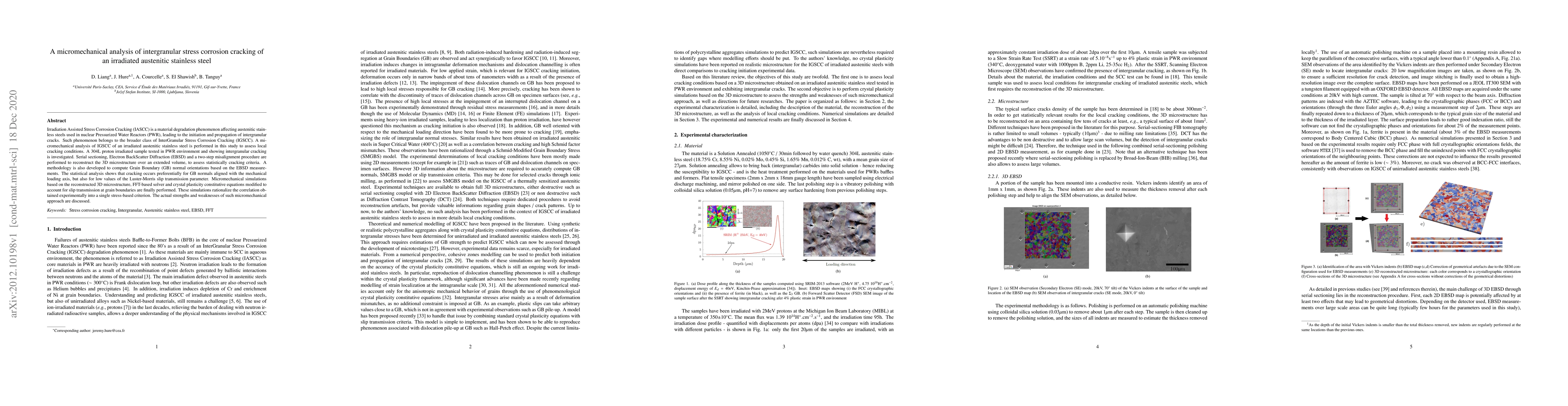 This study investigates the micromechanical aspects of intergranular stress corrosion cracking (IGSCC) in irradiated 304L austenitic stainless steel used in nuclear reactors. Through 3D microstructure reconstruction and statistical analysis, it finds that cracking preferentially occurs along grain boundaries aligned with the loading axis and correlates these findings with modified crystal plasticity simulations.