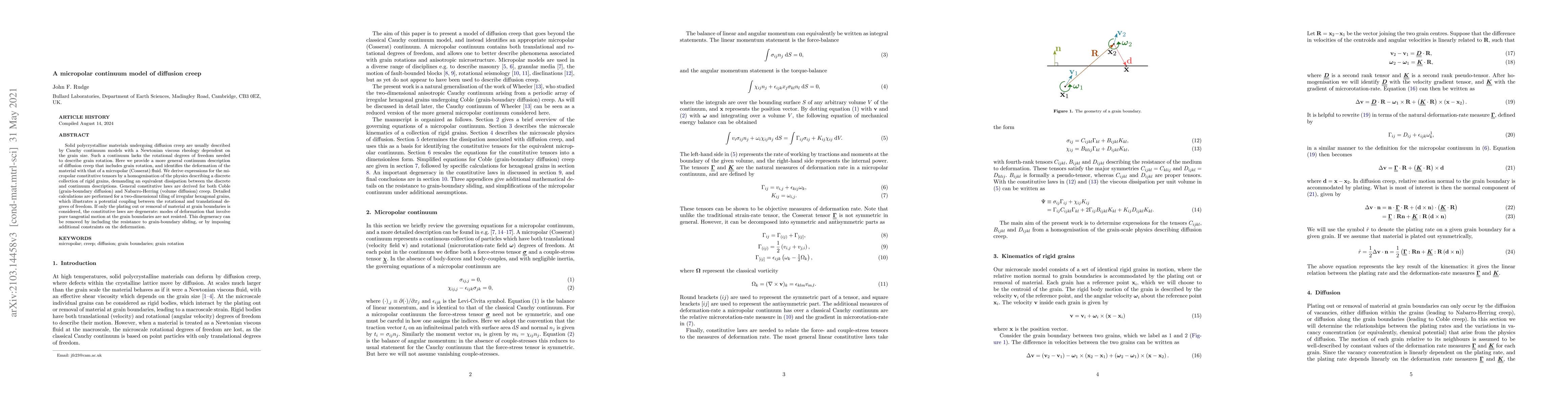 A new continuum model describes diffusion creep in polycrystalline materials with grain rotation, providing a more accurate description than traditional Cauchy models.
